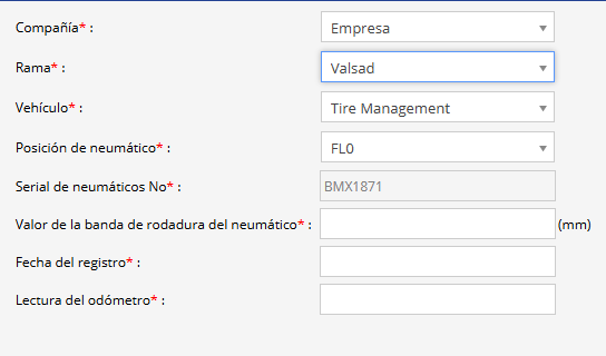 - El Número de Serie del Neumático se completará automáticamente según la posición seleccionada.