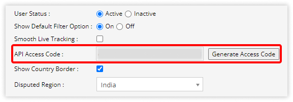 - Navigate to User Settings > API Access Code.