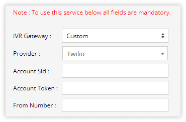- In the IVR Gateway field, select the preferred IVR service gateway, which is currently set to Twilio, as it is the default integration on the system.