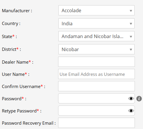 - Add a User Name for the Dealer. Use an email address as a user name.