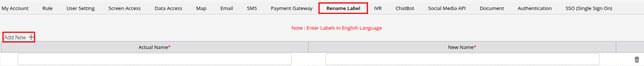 - Click on Add New, enter the existing label name, and input the desired new name in the provided textbox.