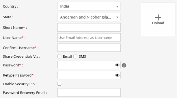 - Share Credentials Via, click on the checkbox to share the Login credentials .