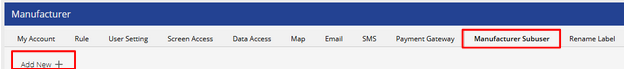 - Navigate to the Manufacturer Subuser tab.
