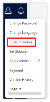 - Click on User > Customization.