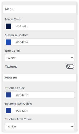 - Use the color picker to set the Menu Color, Submenu Color and Icon Color.