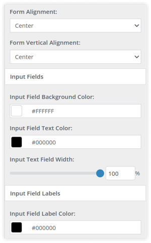 - Use the color picker to set the Input Field Background Color and Input Field Text Color.
