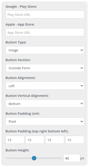 - Enter the Google Play Store and Apple App Store URL as required.