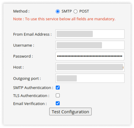 For SMTP Method: