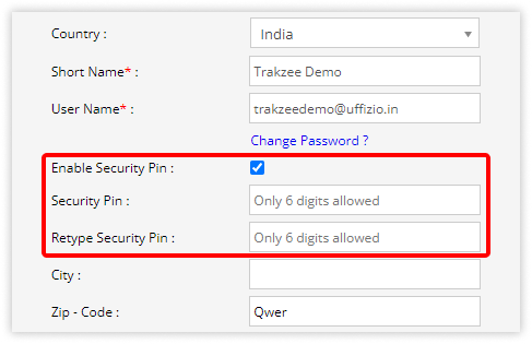 - Enter a 6-digit pin in the Enable Security Pin text box.