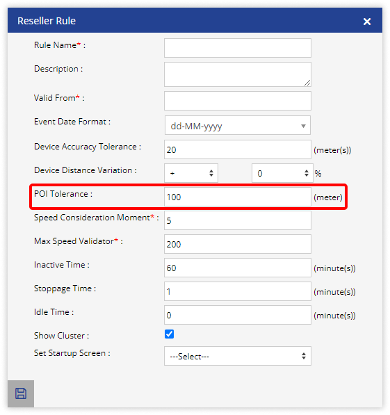 Please Note: At the time of adding POI, the default POI tolerance is 100-meter. The Super Manufacturer or Manufacturer can adjust it according to the requirement.