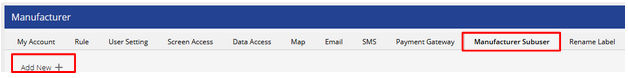 - To create a new account, click on Add New and fill in the required details. Please refer Create an Manufacturer Subuser account for more details.
