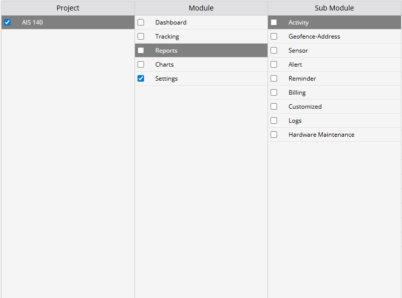 - Select the Module you wish to grant the sub-user access to.