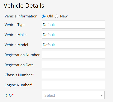 - Select Vehicle Information type (Old / New).