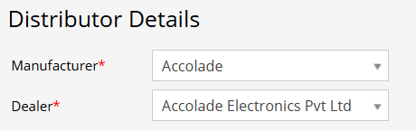 - Distributor Details – Selects the manufacturer and dealer associated with the device.