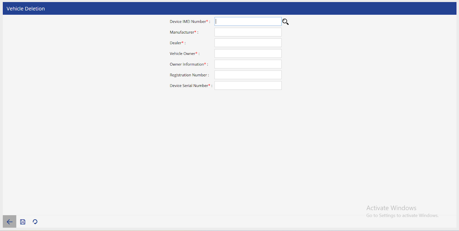 The Vehicle Deactivation screen is used to remove an already registered vehicle and its associated VLTD device details from the system. This action is typically performed in cases such as incorrect entry, vehicle decommissioning, device replacement, or ownership changes.
