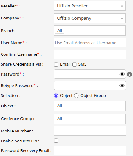 - The Company Dropdown appears only when a company subuser is created from a Reseller account.