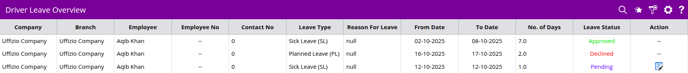 - Once you click on Driver leave, you will find list of all the leave requests