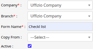 - Choose the appropriate Company and Branch from the dropdown menu for which you would like to configure the form.