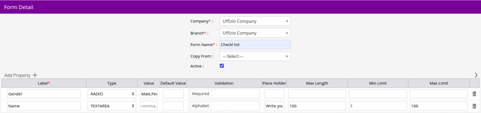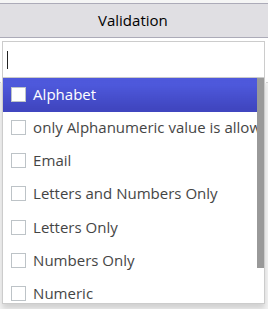 - eg: if you have selected the Type as textarea you can set the validaton as alphabet. so in that label only alphabet can be written and nothing else.