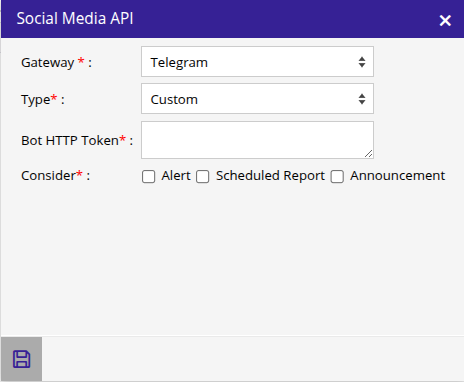 Social Media API (Application Programming Interface) is integrated into the software so that the user can receive alerts, reports, or announcements via the set social media platform.