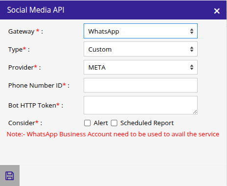 - Choose the Gateway from the drop-down. You will find Telegram and WhatsApp available as selection options, as these platforms have already been seamlessly integrated into our application.