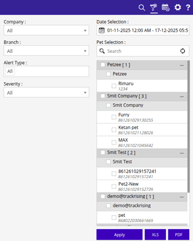 Upon clicking the apply button, users will be able to view the report tailored to the specified time range and selected pets.