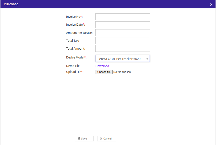 Enter Amount Per Device, Total Tax, and Total Amount as per your purchase order.