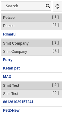 When a user clicks on the pet name from the settings bar, the pet list appears on the left side of the screen, as shown below: