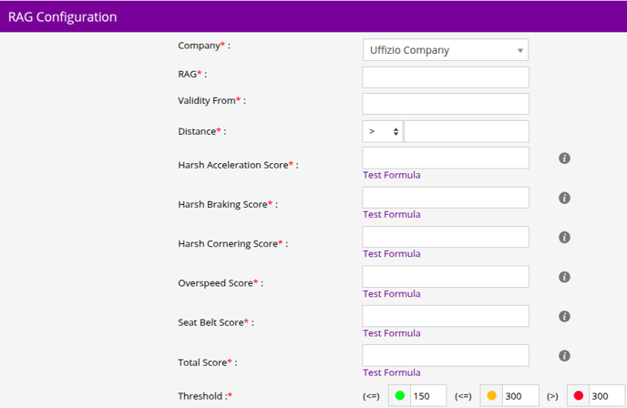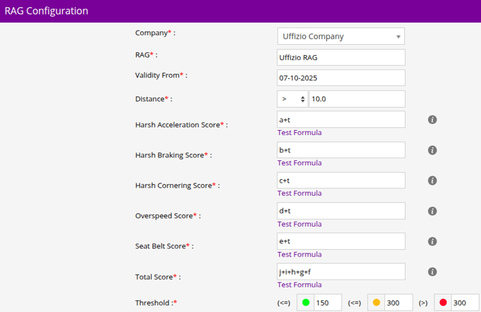 - In Threshold, you can set the score limits for Green, Amber, and Red. Based on the total score, the driver will be categorized under the corresponding color