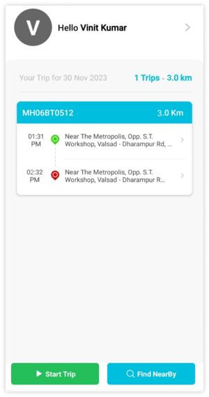 On the Home Page, you can find the details of the ongoing trip and the details of all the trips taken earlier.