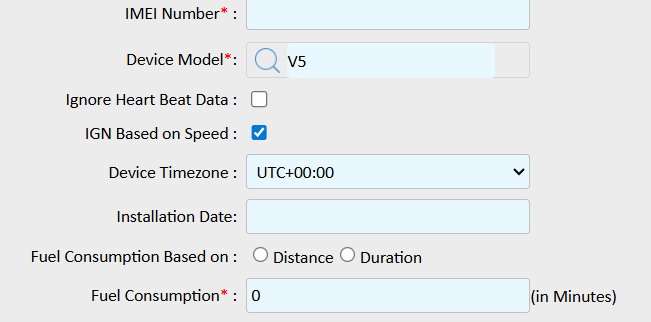 The Add Device screen is used to register and map a tracking device to a vehicle within the system. This process links the device, SIM, and vehicle details to enable live tracking, reports, and analytics.