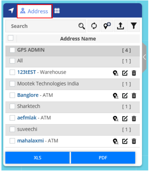 - Add Address: By clicking on Add Address, the user can add an address directly from the Live Tracking Screen. Learn more about Address configuration.