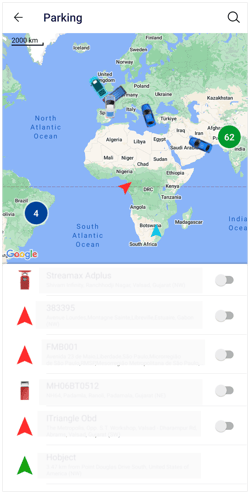 Upon clicking on Parking, the user will be directed to the parking overview screen, where the user can have a look at all the vehicles, along with their status.