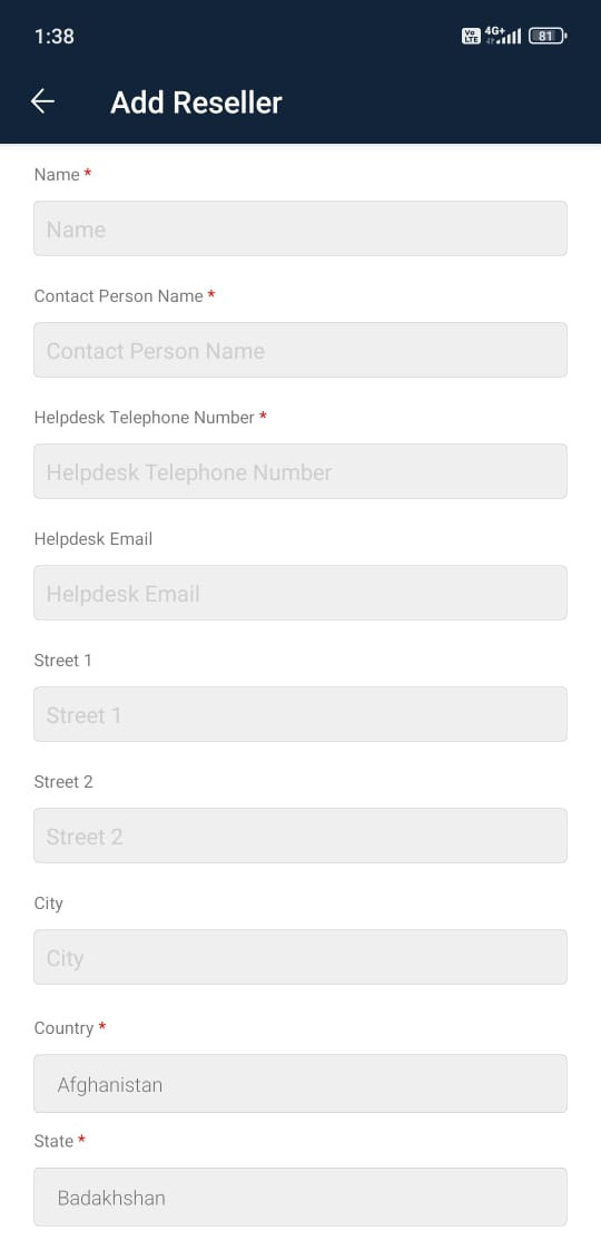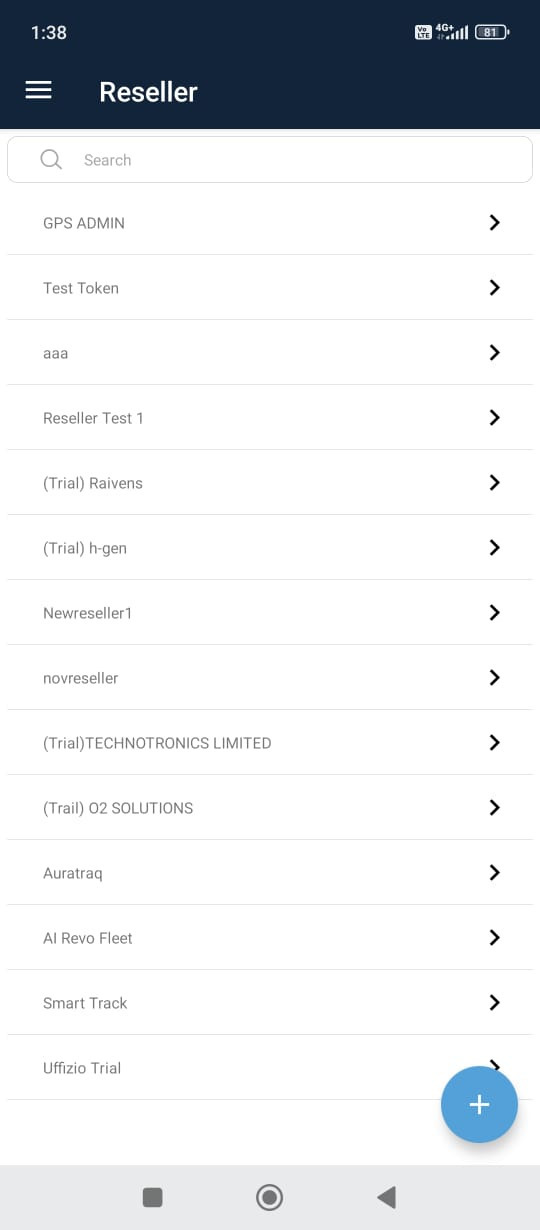 - To add a new reseller, tap on the “+” (Add) icon at the bottom-right corner.