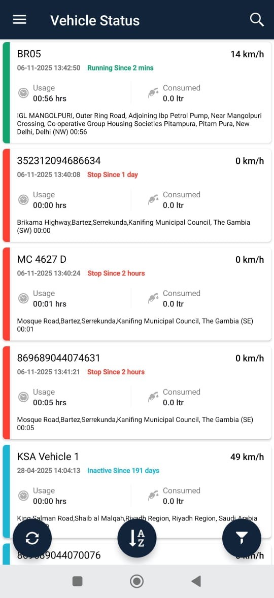 - 📋 Filter: Filter vehicles by running/stopped/inactive status.