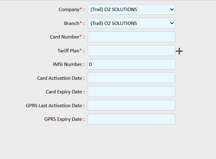 The SIM Card Detail screen is used to add, configure, and manage SIM cards that are installed in tracking devices. This module helps maintain accurate information related to SIM ownership, tariff plans, activation dates, and validity, ensuring uninterrupted device connectivity.