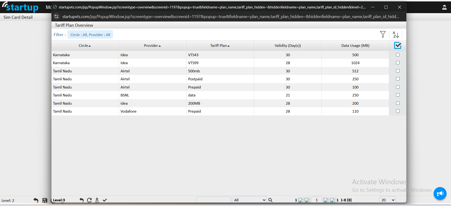 - Select the applicable tariff plan for the SIM card.