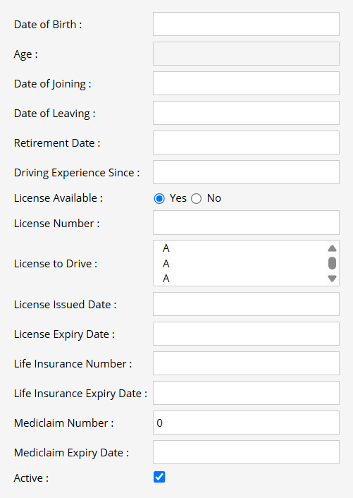 - From the drop-down menus, select the Company, and Branch under which you want to add the driver.