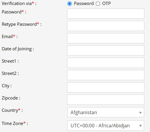 - Password: Enter the Password for the login credentials and confirm it by retyping the password in the Retype Password field.