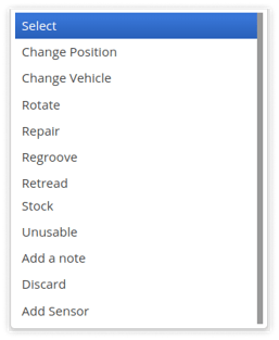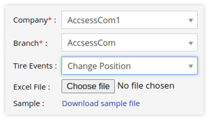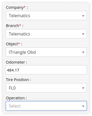 - Choose the appropriate Company, Branch, and Vehicle from the drop-down list for which you wish to execute the tire operation.