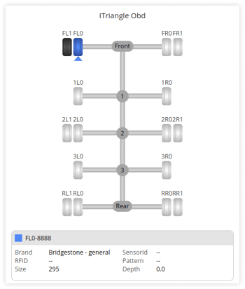 The tire position selected will be shown in the axle diagram along with the tire details on the screen, as shown in the below image. - Select the Operation from the drop-down list and enter the required information accordingly.