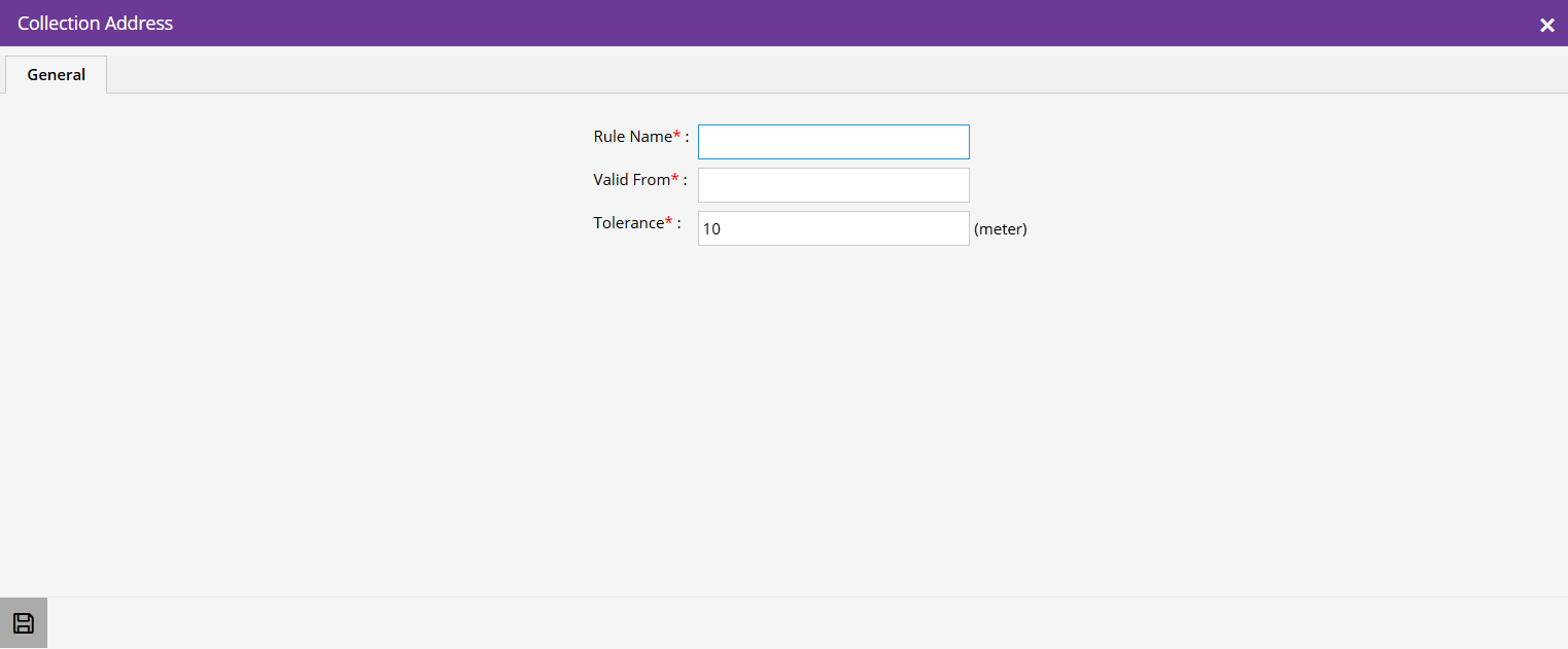- Enter the Tolerance of the collection address in meter.