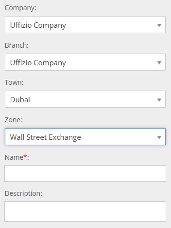 - Select the Company, Branch, Town and Zone from the respective drop-down menus under which the zone will be created.