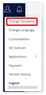 Please Note: The process outlined here is an example for an Admin Account. To change the password for Reseller, or Sub-user account, the steps remain the same. The only difference is selecting the respective account instead of the Admin account.