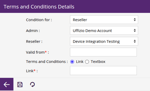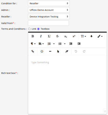 - In Condition for, select either Reseller or Company based on the user type for which you want to configure the terms and conditions.