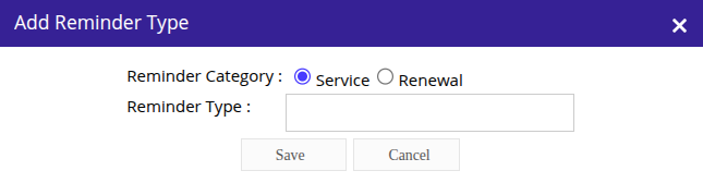 - If your reminder is not listed, click Add a New Reminder Type from the dropdown. Select where you want it to be listed (Service or Renewal), then enter the name of the reminder you want to add. The new reminder will be created and added to the list.