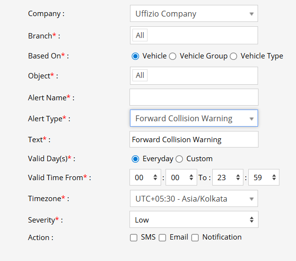 - Object Type:Select vehicle or object type for whom you want the alert to be applied equipped with ADAS features.