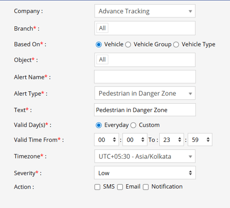 - Object Type: Select vehicle or object type for whom you want the alert to be applied equipped with ADAS features.