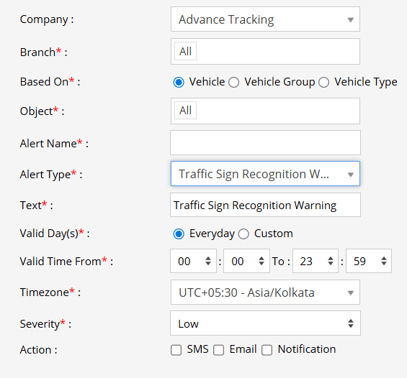 - Enter an Alert Name (e.g., Traffic Sign Violation Warning).
