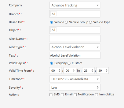 - Enter an Alert Name (e.g., Alcohol Level Violation).